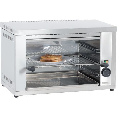 - Нержавіюча сталь- Регульований термостат- Нагрівальний елемент Incoloy 800- Лоток для відходів- Регульована висота сітки на 3-х рівнях- З'ємна задня поверхня буде використовуватися для обслуговування- Полки Розміри: Ш 430 х Г 310 мм- Потужність: 2,2 кВт / 230 В- Розміри: Ш 600 х Г 370 х 375 мм H- Вага: 18,8 кг